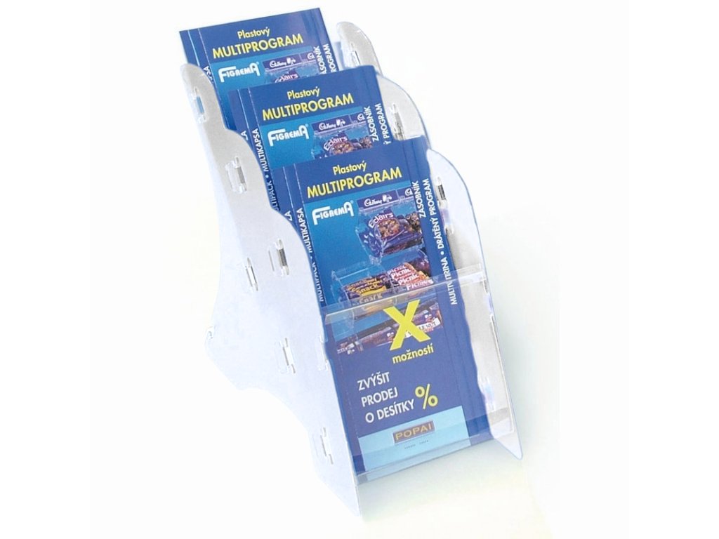 - stolní plastové zásobníky v kapsami A4, A5, DL nebo jejich kombinace