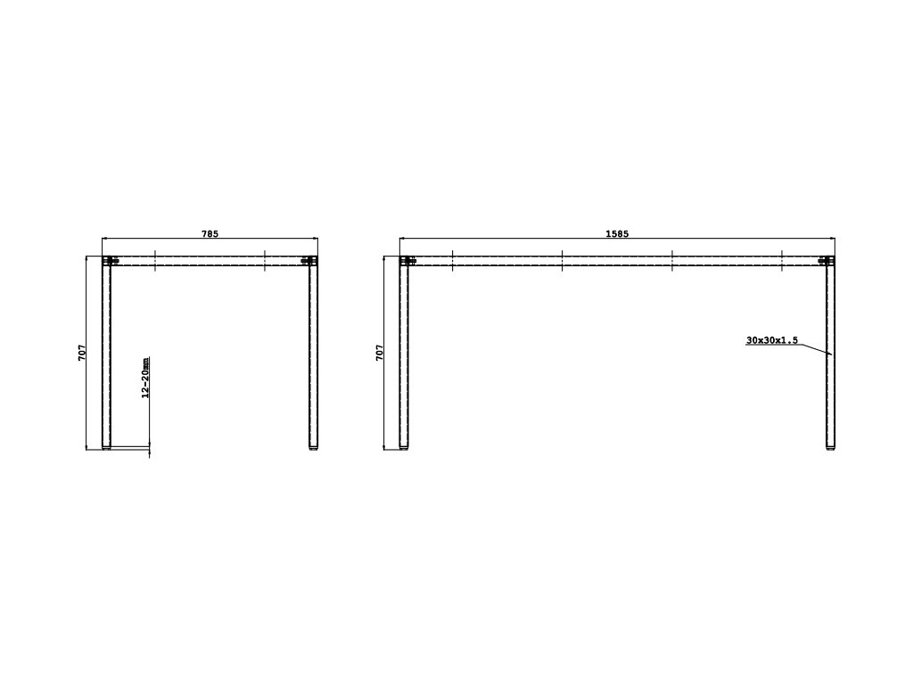 - rám stolu tvoří kovová konstrukce, která je svařena z profilové oceli: rám stolu z profilu 35 x 20 mm a nohy stolu 30 x 30 mm
