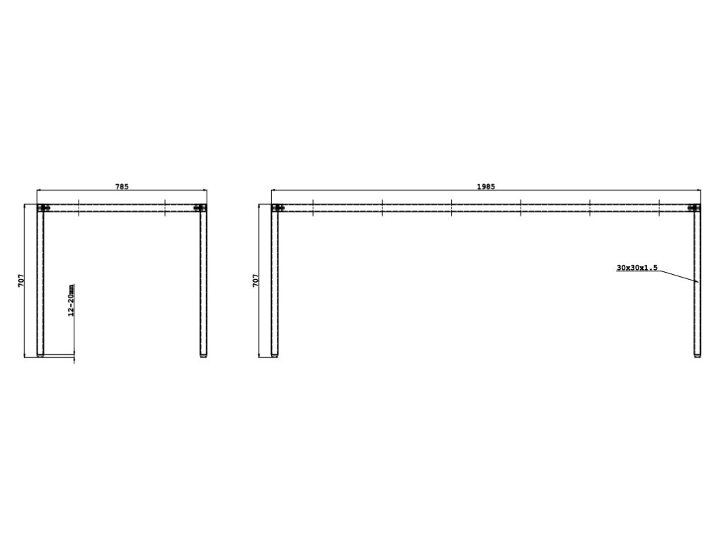 - rám stolu tvoří kovová konstrukce, která je svařena z profilové oceli: rám stolu z profilu 35 x 20 mm a nohy stolu 30 x 30 mm