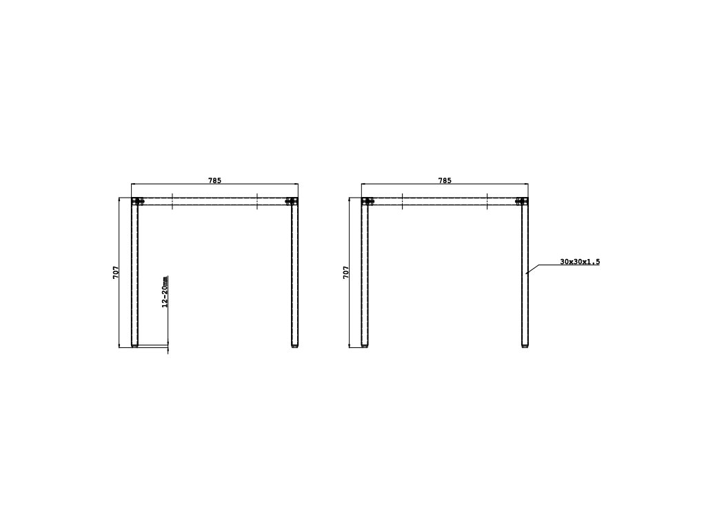 - rám stolu tvoří kovová konstrukce, která je svařena z profilové oceli: rám stolu z profilu 35 x 20 mm a nohy stolu 30 x 30 mm