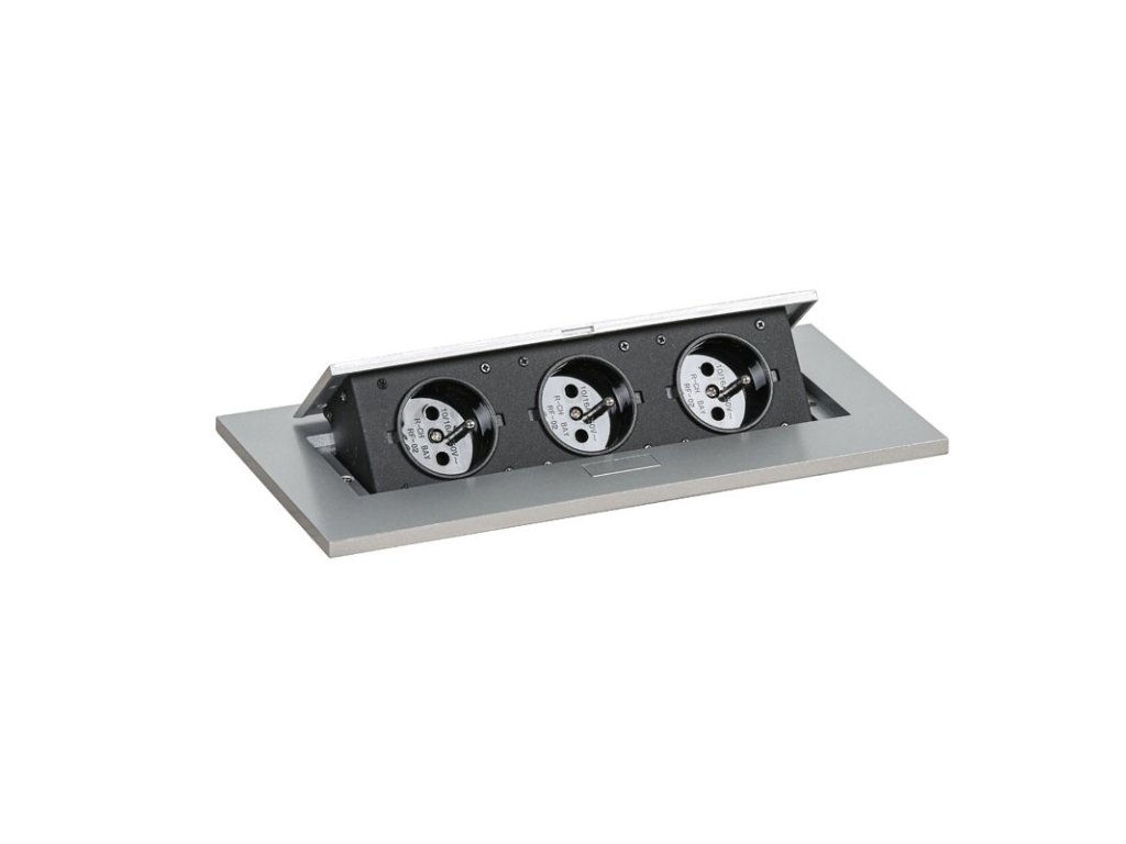 Výklopná zásuvková lišta TYP I integrovaná ve stole je vyrobena ze slitiny zinku a železa. Obsahuje tři elektronické zásuvky s uzemněním (francouzský typ) pro snadné nabíjení zařízení v případě potřeby přímo na pracovní ploše stolu. Dostupná ve stříbrné / černé barvě nabízí elegantní skryté řešení nejen pro kanceláře, konferenční místnosti, ale i knihovny a studovny. Stupeň krytí je IP10.