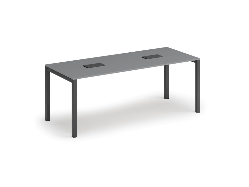 Jednací stůl PRIMO SQUARE, 200x80 cm, grafit + 2x stolní zásuvka TYP III, černá