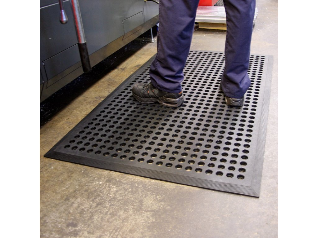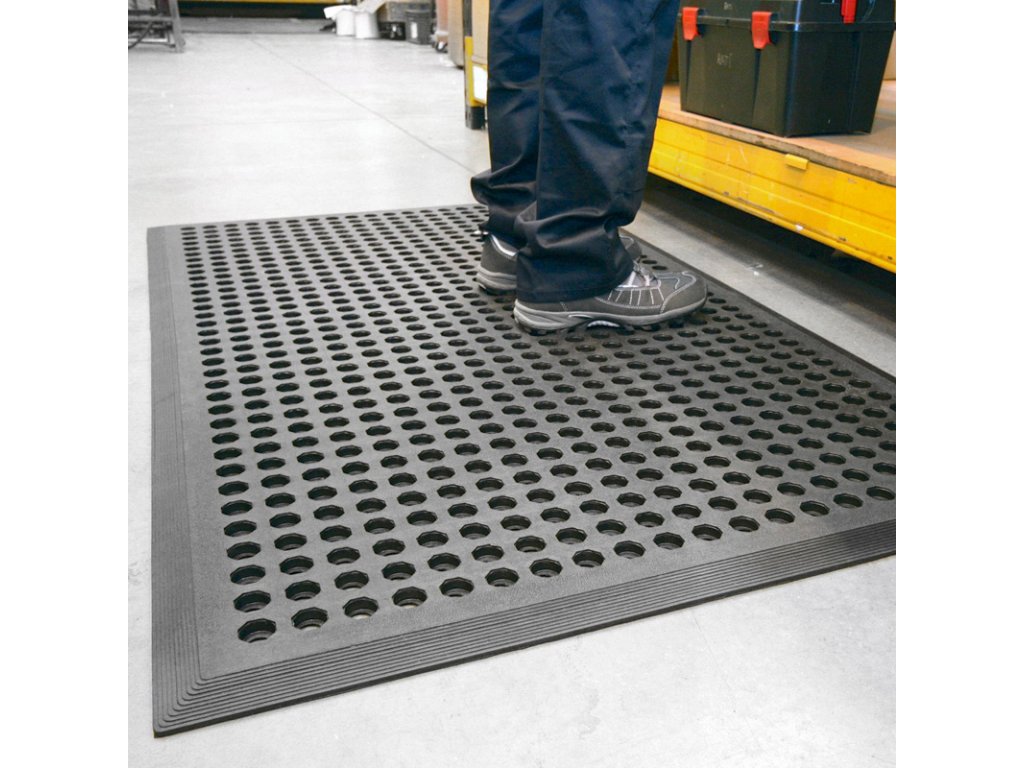 Tuhá gumová rohož, protiúnavová pro práci ve stoje, pryž, 0,9 x 1,5 m, černá