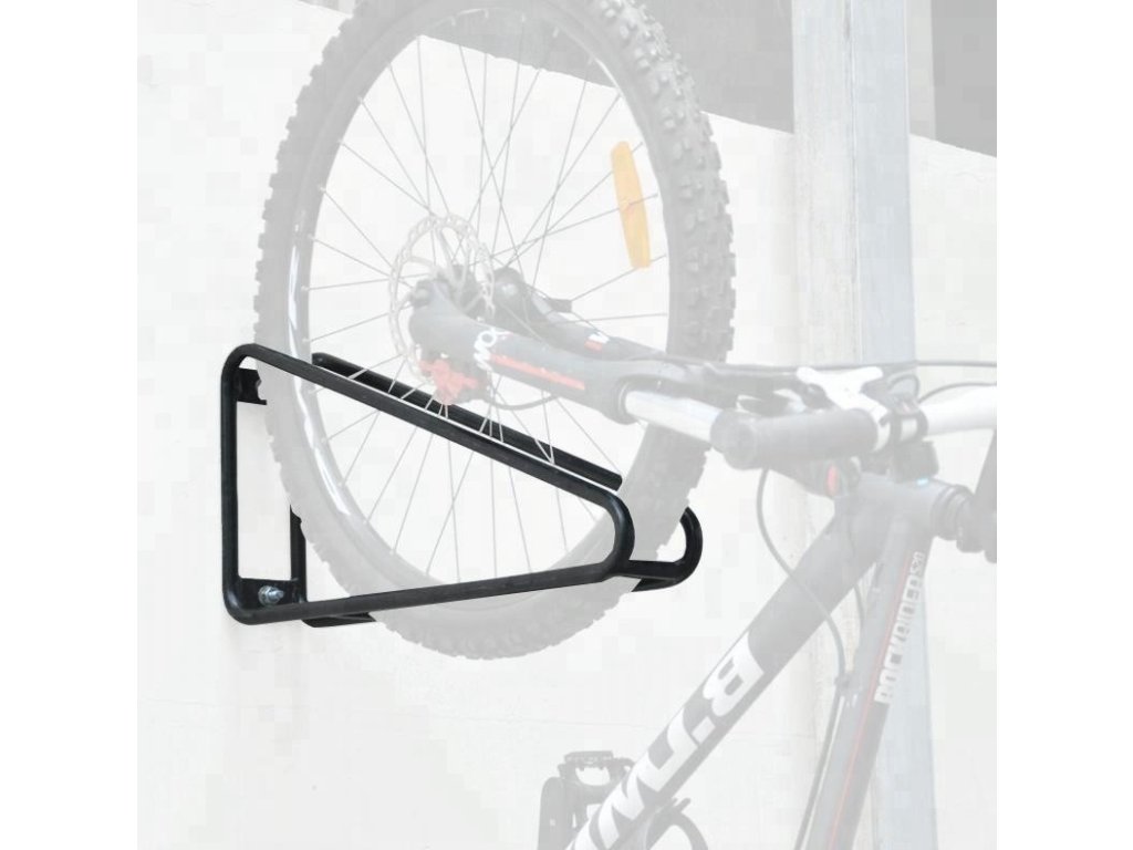 Ocelový stojan na kola vhodný do garáží nebo bytů. Umožňuje zavěšení jednoho kola na stěnu. Montáž se provádí šrouby do zdi, které jsou součástí balení. Vyroben z trubek o průměru 13 mm. Povrchově upraveno práškovou barvou v černém odstínu. Věšák je určen pro maximální šířku kola 65 mm, je vhodný pro kola 26"-29".