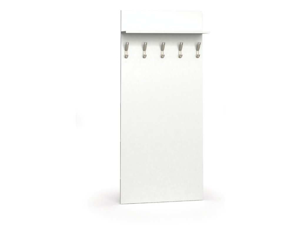 Věšáková stěna HORIZONT, 5 háčků, police, bílá