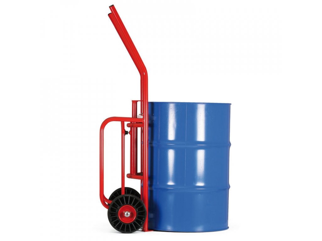 Vozík na sudy, který vám zjednoduší práci, použitelný též jako stojan na sudy v ležaté poloze s možností vylévání obsahu s pomocí kohoutu, aniž byste museli sud z vozíku sundávat. Vozík je vybaven stavitelnou pojistnou tyčí, překlápění z ležaté polohy do stojící polohy zvládne jedna osoba. Nádoba na úkapy kapalin je součástí dodávky. Plná pryžová kola o průměru 260 mm zajišťují, že vozík je schopen překonávat i drobné překážky a nerovnosti na podlaze. Vozík je vybaven kladkami, které dovolují snadné natočení sudu do požadované polohy pro vylévání. Konstrukce je svařovaná z ocelových trubek, kovové části jsou lakovány práškovým lakem v odstínu 3001 dle stupnice RAL.