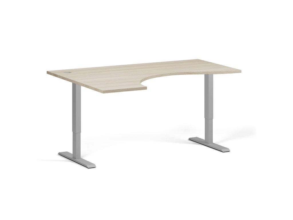 Ergonomický výškově nastavitelný stůl. 160x120 cm, 2 motory, L/P, šedá podnož, dub přírodní