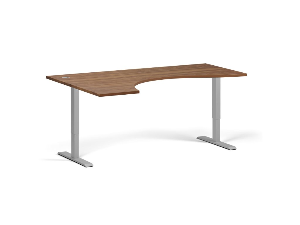 Ergonomický výškově nastavitelný stůl. 180x120 cm, 2 motory, L/P, šedá podnož, ořech