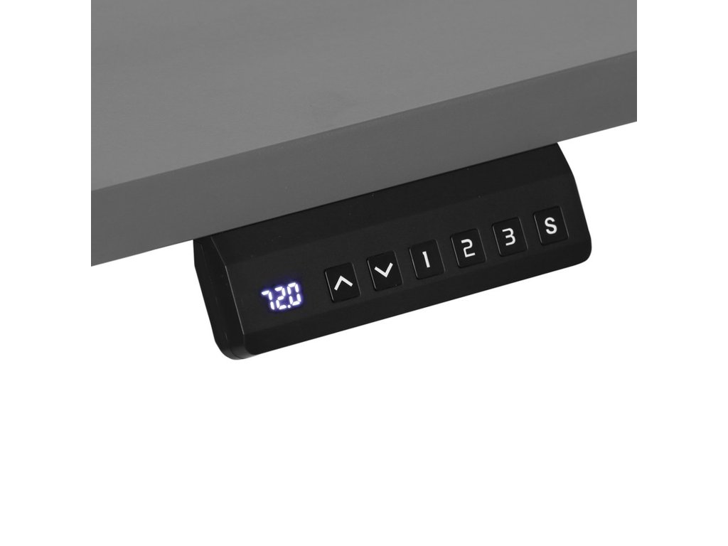 Samotné polohování výškově stavitelného stolu lze provést na milimetr přesně stisknutím tlačítek nahoru/dolů na ovládacím panelu. Při jakékoliv změně nastavení vždy na displeji uvidíte aktuální výšku stolu. Uložit si můžete své oblíbené pozice vsedě i ve stoje. To oceníte nejen při střídání pracovních poloh, ale i tam, kde se u jednoho stolu mění více pracovníků. Tlačítka na ovladači jsou přehledně rozmístěna tak, aby ovládání stolu bylo co nejpříjemnější. Nechybí ani podsvícený displej.