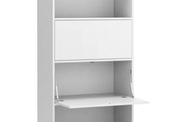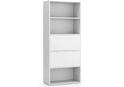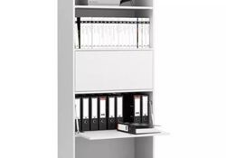 Kancelářský regál je místy doplněn i o boxy s vyklopným mechanismem dvířek, které se otevírají směrem dolů. Pokud byste výklopná dvířka, chtěli doplnit i do ostatních polic, můžete je snadno dokoupit i samostatně.