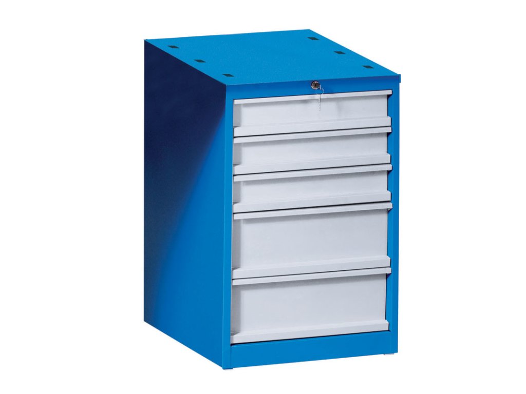 Zásuvkový dílenský box na nářadí k pracovnímu stolu GD, 5 zásuvek, 510 x 592 x 810 mm, modrá / šedá